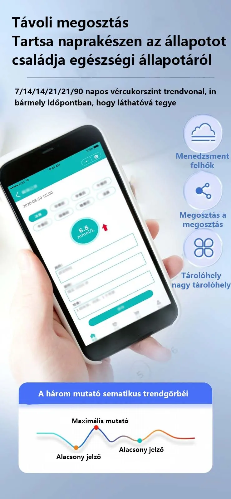 Vércukorszint mérés, vérnyomásmérés, vérnyomás (továbbfejlesztett verzió)